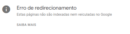 O que significa: o Google tentou seguir a URL, mas encontrou um problema no redirecionamento. Assim, a quantidade de páginas não indexadas aqui, pode estar acontecendo por: